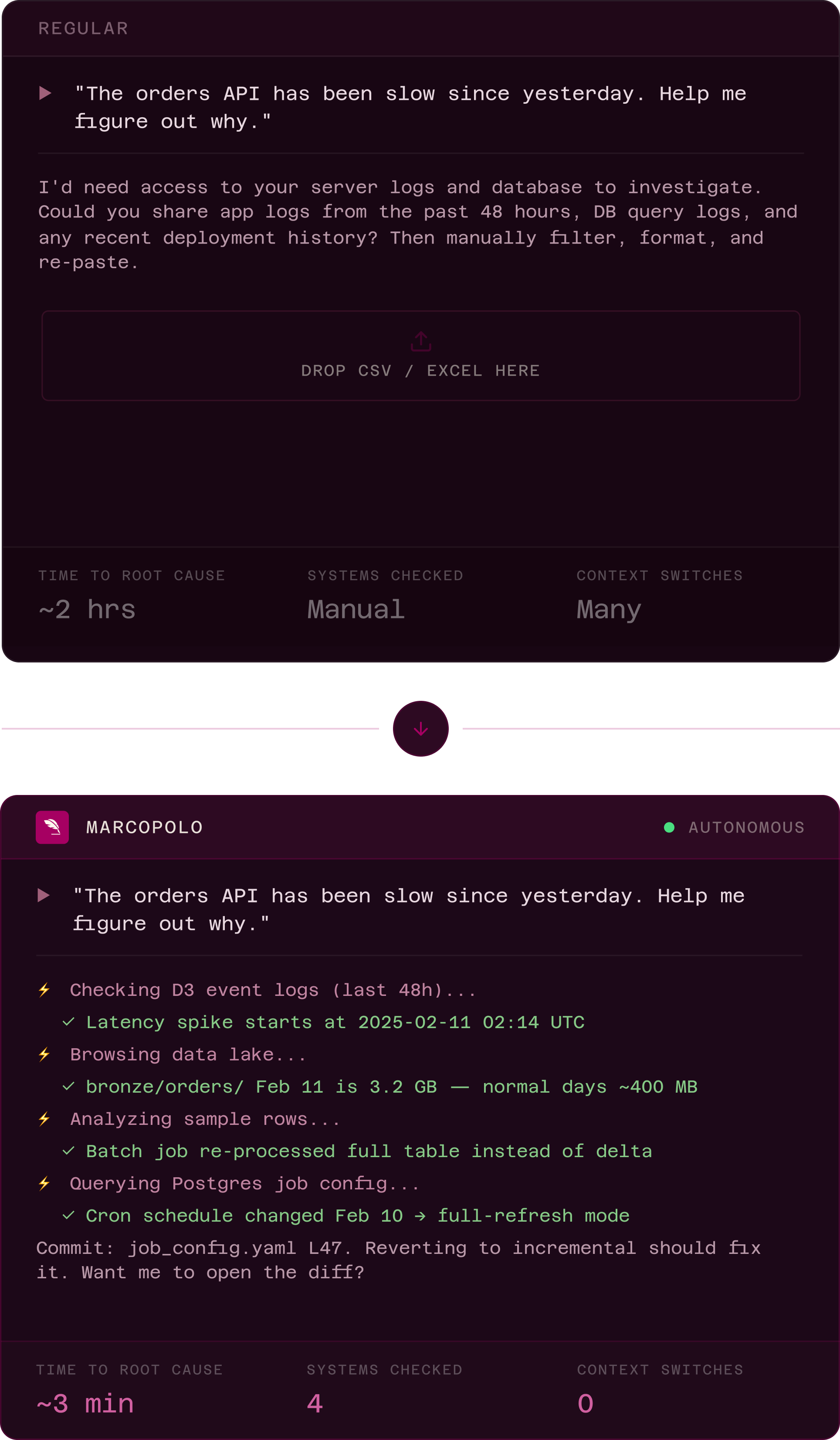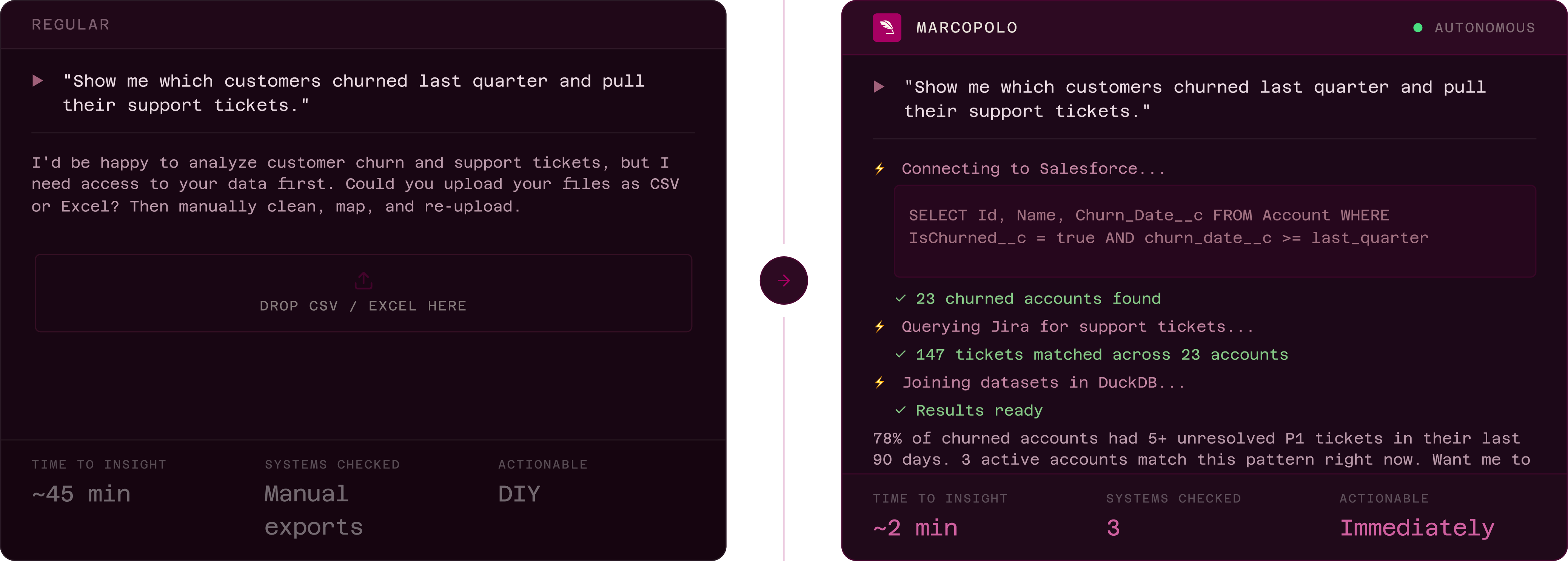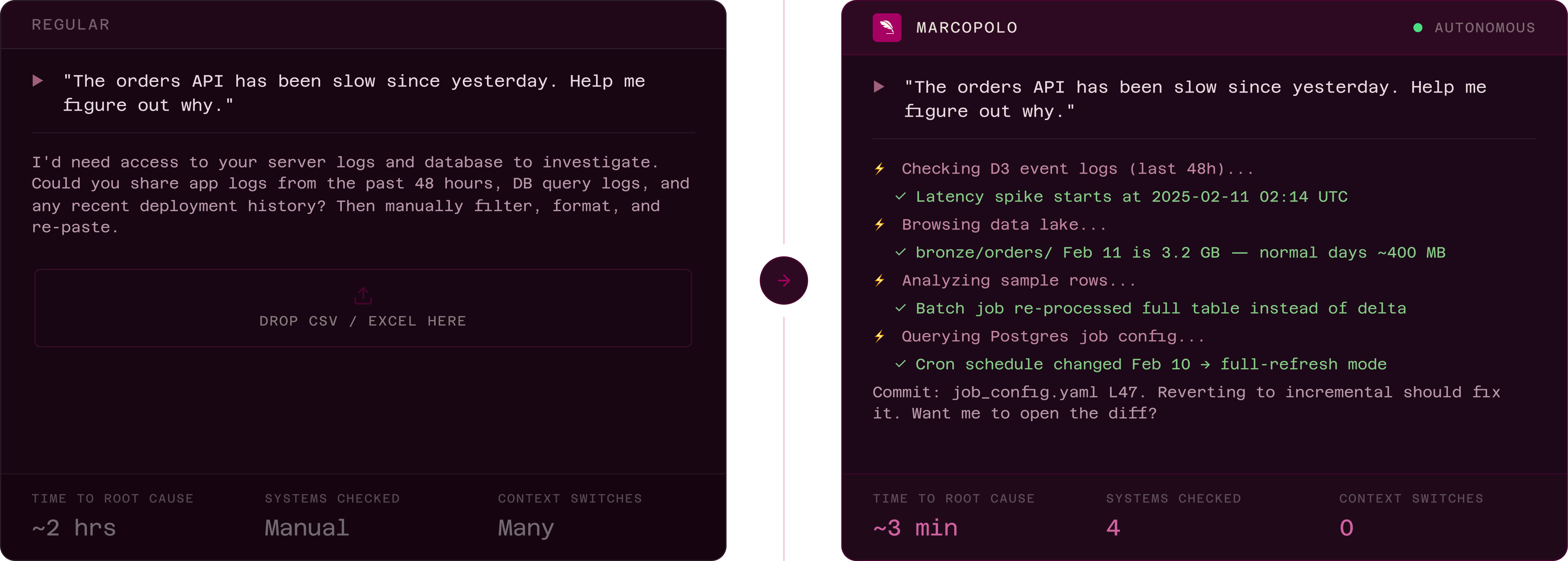 “We went from 45-minute manual exports to 2-minute AI-driven analysis. MarcoPolo turned our AI from a chatbot into an actual analyst.”